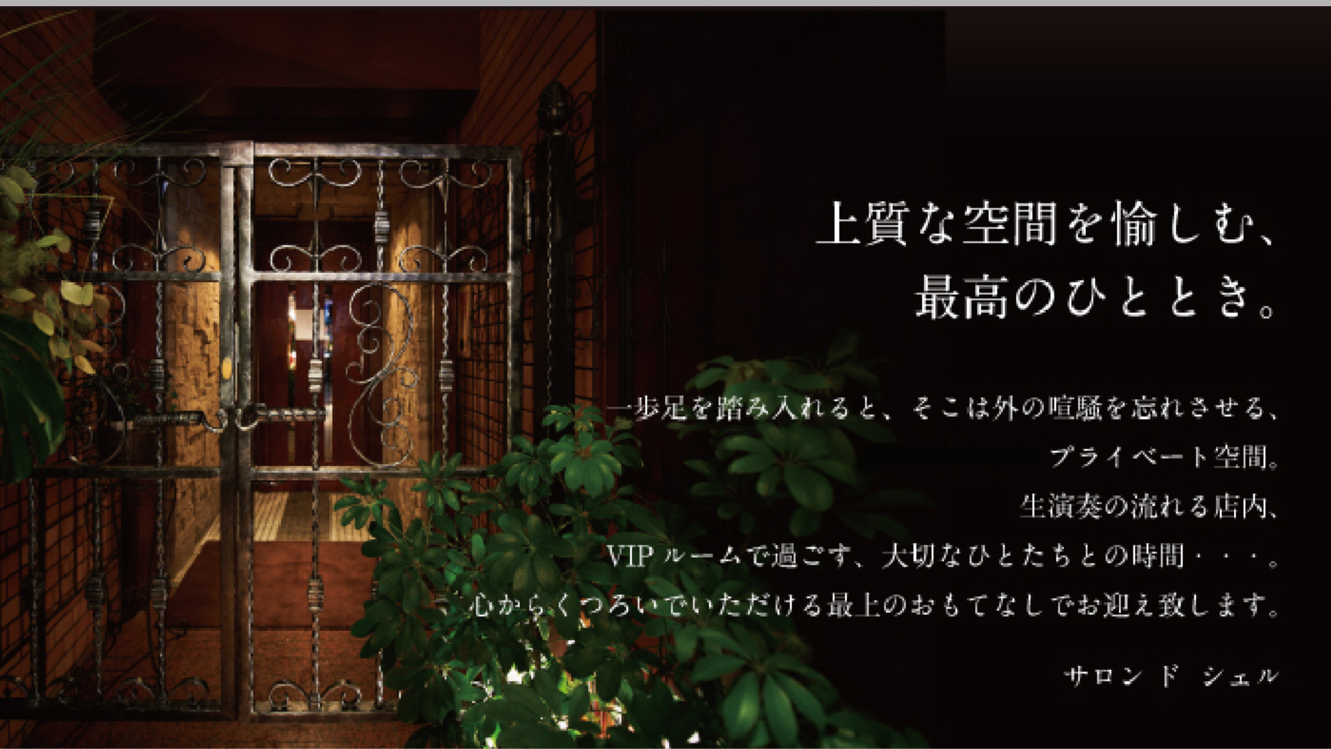 salon de Shellは、居心地の良さを追求した会員制のピアノバーです。石壁の重厚なコントラストと、希少なブビンガ材を使用した一枚板カウンターが、落ち着きと品格ある空間を演出。生演奏によるピアノの音色を間近で楽しみながら、心をほどく贅沢な時間をお過ごしいただけます。お食事は地産地消を心がけ、音楽と調和する味わいをご用意。日常を忘れ、大人のための静かなひとときをお楽しみください。