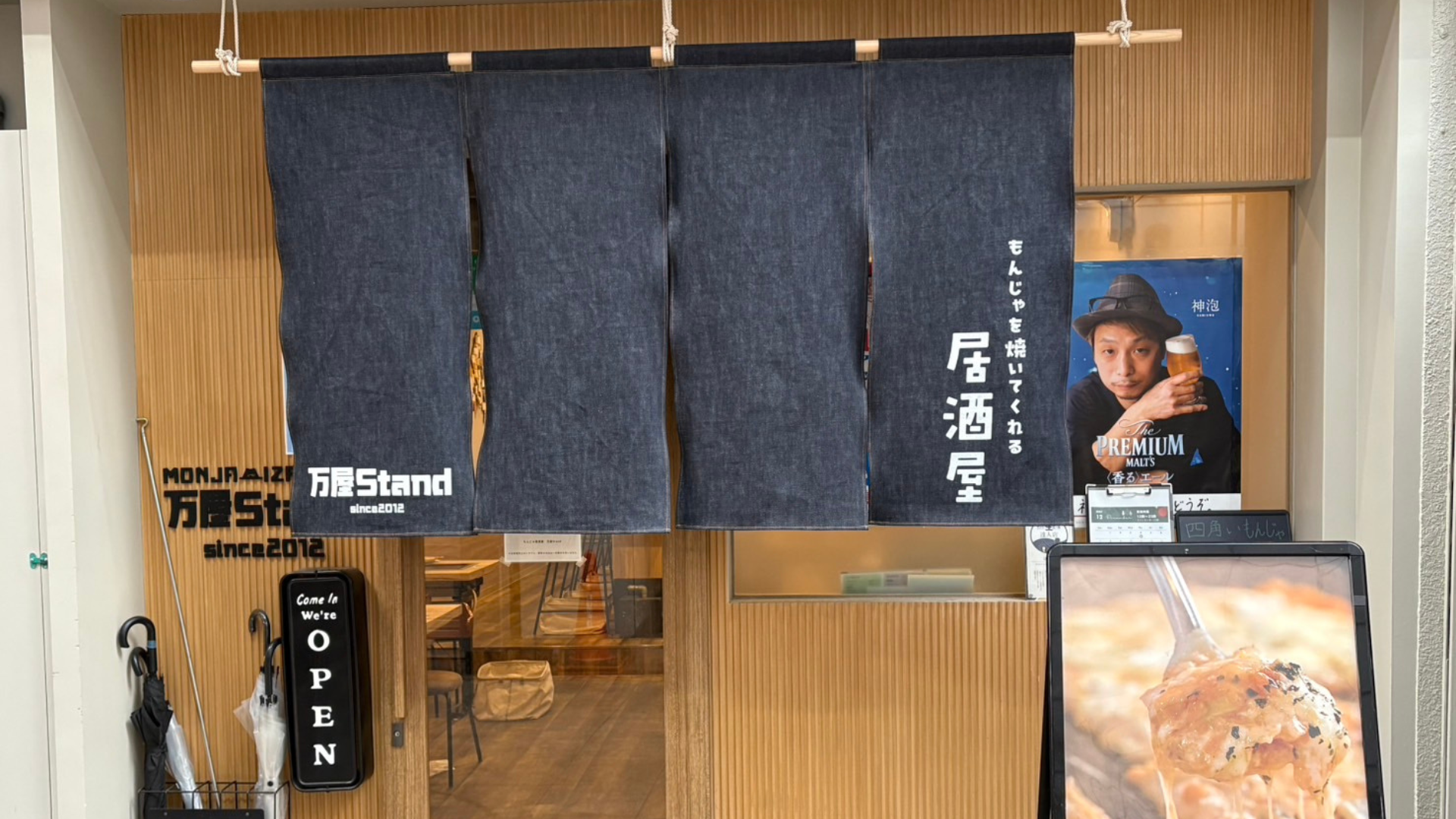 万屋Standは、居酒屋スタイルでもんじゃ焼きを楽しめるお店です。1階・2階すべての席に鉄板を完備し、カウンター席でももんじゃが味わえます。もんじゃはスタッフが丁寧に焼くので、初めての方でも安心。定番のもんじゃはもちろん、塩焼きそばや串揚げなど居酒屋メニューも豊富に揃えています。気取らず、わいわい楽しめる普段使いにもぴったりなアットホームな雰囲気で、天満の乾杯「あーーし!」発祥のお店です。